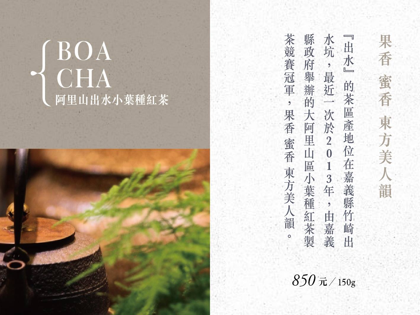 『出水』的茶區產地位在嘉義縣竹崎出水坑,最近一次於2013年,由嘉義縣政府舉辦的大阿里山區小葉種紅茶製茶競賽冠軍,